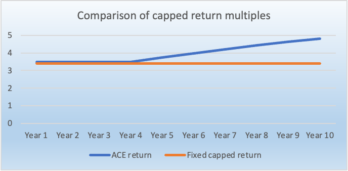 The solution we came up with is the Appreciating Capped Economic (“ACE”) return, whereby the economic cap grows over time.